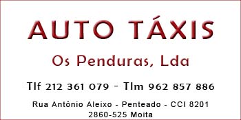 Auto Táxis Os Penduras, Lda Serviços / Roteiro Digital Check all listings by this user Contact details Rua António Aleixo - Penteado - CCI 8201Setubal,2860-525 - MOITA 212 361 079 Telemóvel 962 857 886 Facebook Twitter Google+