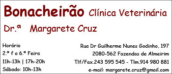 Bonacheirão Clínica Veterinária Dr.ª Margarete Cruz Animais / Roteiro Digital Check all listings by this user Contact details Rua Dr Guilherme Nunes Godinho, 197Santarém,2080-562 - FAZENDAS DE ALMEIRIM 243 595 545 Telemóvel 914 980 881 Fax 243 595 545 margarete.cruz@gmail.com Facebook Twitter Google+